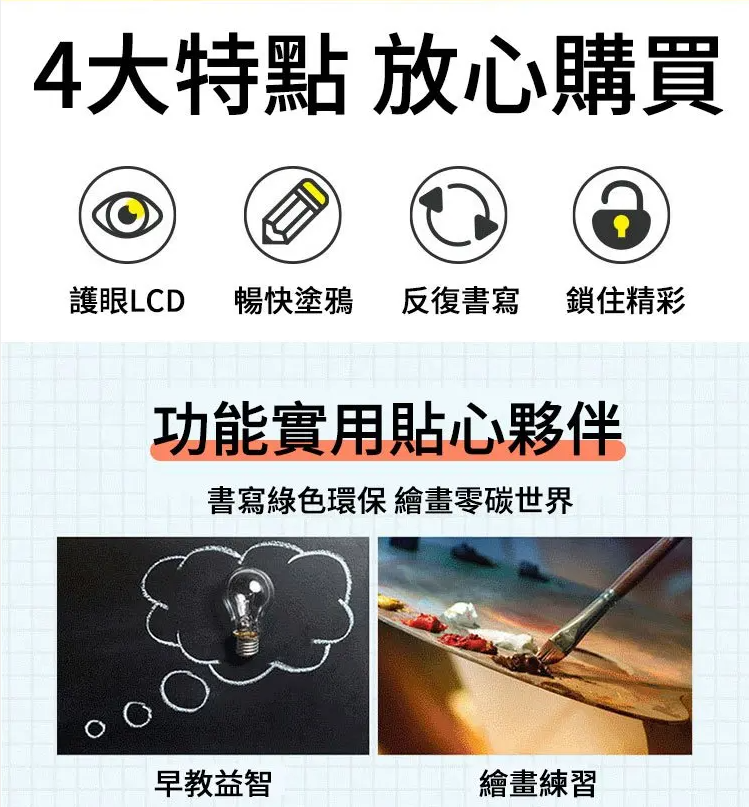 半小時前不要孩子一哭就給手機玩,大人省事對孩子不好!給個【液晶手寫板】就能玩半天,一鍵擦除,反復書寫,滿足孩子塗鴉愛好,還能培養想象力! - 【★★★★★】8.5寸+12寸僅需 NT$1380